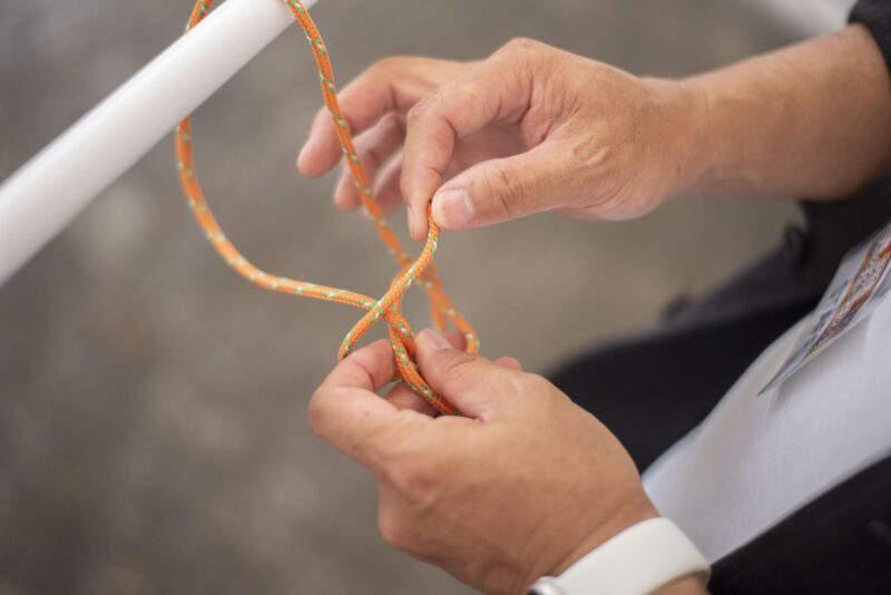 覚えるまで難しいけど、覚えてしまえば早く結べるもやい結び。もやっとせずに最初に5分程もやい結びを練習してからチャレンジスタート!